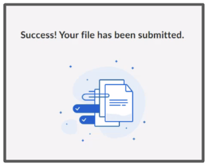 8. You should now see your data file in the "Upload files" section. (If you do not, return to the previous step and repeat the file selection process.) Click "Submit" in the bottom right corner. You will then see the file upload success page to confirm the data upload is complete.